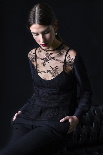 Terciopelo negro y encaje frnacés.