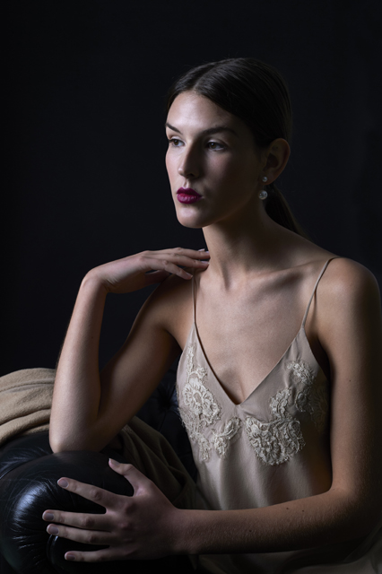 Seda, encaje francés y crepe de lana.